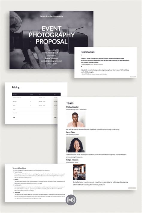 Your proposal should start with an introduction about yourself. Talk about your qualifications, experience, and any awards or accolades you’ve received. You should also mention your style of photography and your approach to capturing a couple’s special day. This introduction should give the couple an insight into your work and make them feel comfortable with your services.